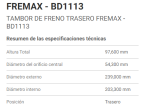 Campana de frenos ford focus/ecosport/fiesta/ modelos
