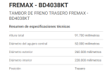 Campana de frenos trasera 229.5 mm renault duster/captur