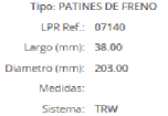 PATINES DE FRENOS FORD ESCORT 203MM