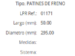 PATINES DE FRENOS ISUZU RODEO 3.0 2002 A 2006 295MM