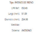 PATINES DE FRENOS MITSUBISHI L200 1994/... 254MM